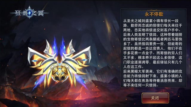 在圣光之城被黑暗之城侵占之后,以往代表和平、纯洁的信鸽已都不复存在,但信鸽其永不停息的强大信念在散发出强烈圣洁光芒之后,和怒翼汇聚在一起!——代表着永恒不变,圣洁、坚定的深刻蕴意,如此奇妙而富有传奇色彩的怒翼,个性的你又怎能轻易错过?