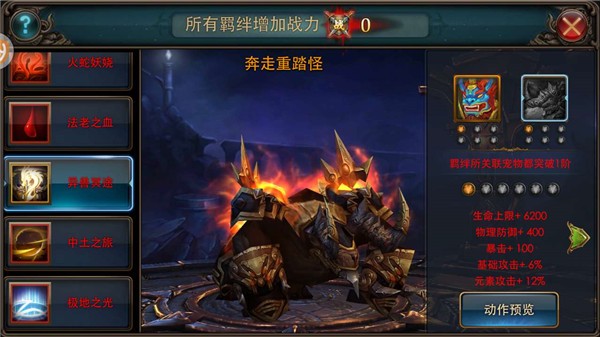 麟异兽的羁绊组合为:“奔走重踏怪+麟异兽,火焰圣天使+麟异兽,铁质霸王龙+麟异兽”,每种羁绊效果都将会带来强大的伤害加成。