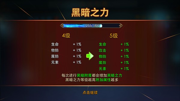 玩家每次进行黑暗附魔时,黑暗套装的部件均会根据附魔的品质,获得相对应的“黑暗之力”经验。达到指定经验后,可对黑暗之力进行升级。在这个过程中,黑暗之力等级的提高,同时也会提升装备的附加属性,从而使装备的威力发挥到极致,华丽技能一触即发!